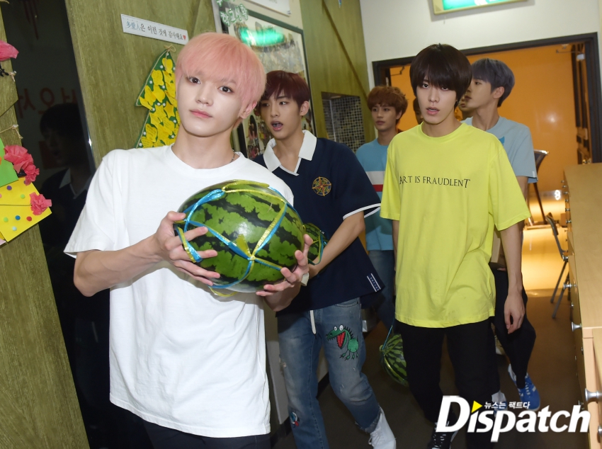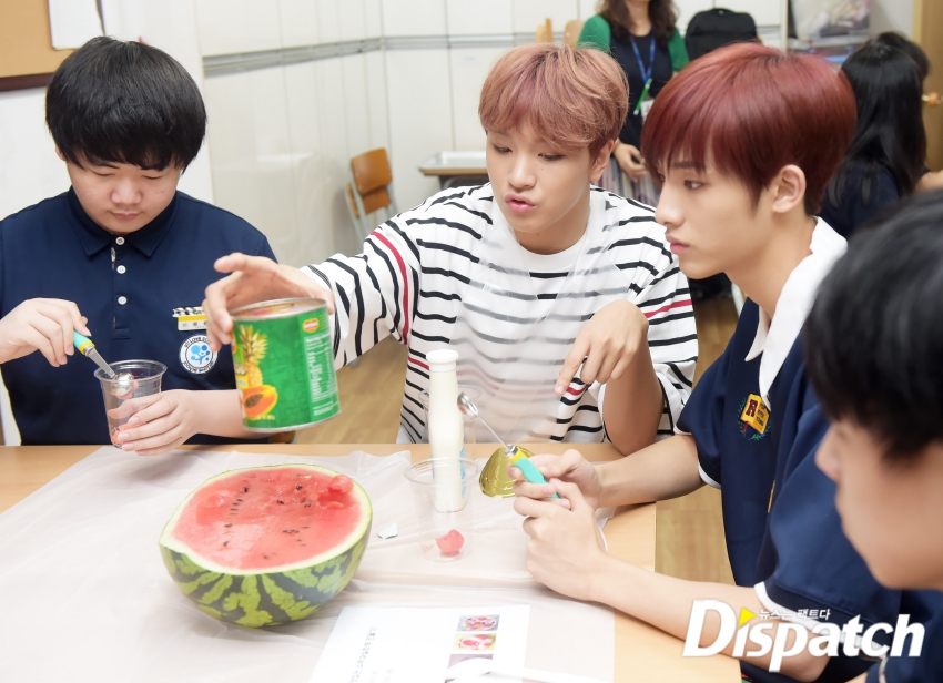 'NCT 127'은 이날 학생들과 화채 만들기에 도전했습니다. 직접 수박, 음료, 연유 등을 준비해왔는데요.