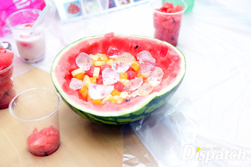 초간단 수박 화채 만들기가 끝났습니다. 지금부터는 먹.방.타.임. 멤버들과 학생들은 그 맛에 반했는데요. 먹고, 또 먹고 하더군요.