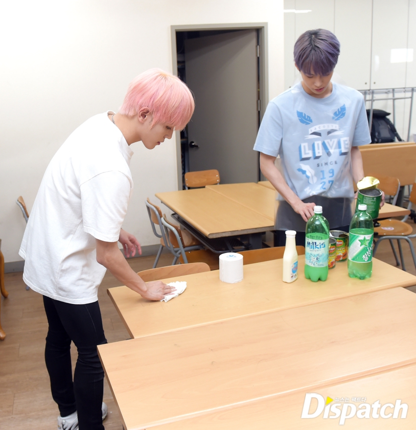 'NCT127'은 2조로 나눠 봉사를 진행했습니다. 1반에는 쟈니, 재현, 윈윈, 해찬, 유타가 들어갔고요. 2반은 태용, 마크, 도영, 태일이 맡았죠.