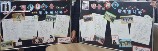 "태용이가 편지를 읽어 보고 너무 쑥스러워했습니다. 아이들과 함께 기념 사진도 찍었죠. 모두들 '태용 장학금'을 받고 싶어할 정도입니다.