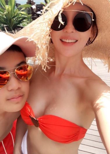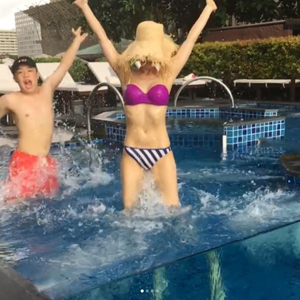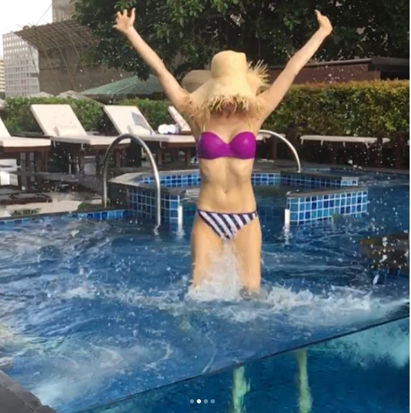 나이는 숫자에 불과했습니다. 44세의 나이에도 불구, 늘씬하고 탄탄한 보디라인을 자랑했고요. 비키니까지 완벽 소화했죠.