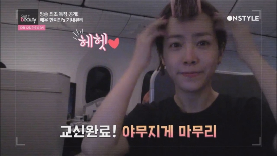 ▶ 자기관리 파: 미녀스타들은 비행기 안에서도 외모 관리를 잊지 않습니다. 배우 한지민은 앞머리부터 챙깁니다. "대왕롤은 여배우의 필수 아이템"이라고 강조했습니다.