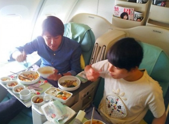 스타들은 기내에서도 방심할 수 없었습니다. 곤히 잠들어 있는 은혁을 놀리듯 '슈퍼주니어'의 동해와 '샤이니'의 민호는 장난스러운 표정을 지어 보였습니다.