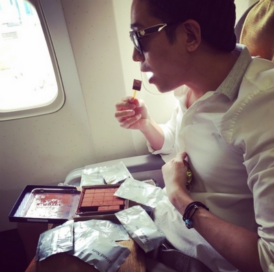 ‘신화’ 에릭은 배고픔을 참지 못해 허겁지겁 초콜릿을 먹었습니다. 같은 멤버 이민우는 “에릭 배고파서 난리 났음. 땅콩을 몇 개나 먹는 건지”라고 덧붙였는데요.