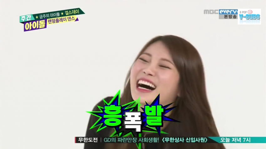 해당 사진을 MBC에브리원 '주간아이돌' 출연분과 비교해 합성했습니다. 눈을 감으며 고개를 젖히고 웃는 모습이 참 한결같습니다.