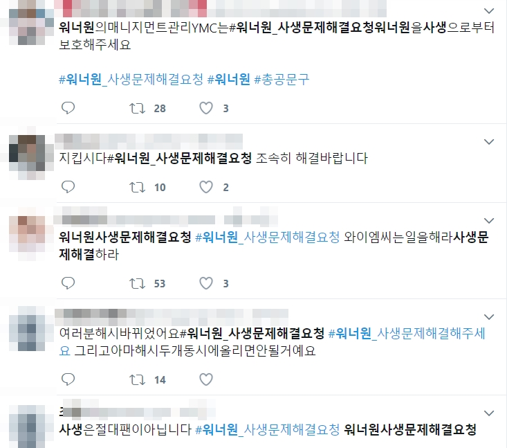 이에 다른 팬들은 소속사 측에 멤버들을 보호해달라고 요구하고 있습니다. SNS에서 "워너원 사생문제해결요청"을 해쉬태그로 달고 있습니다.
