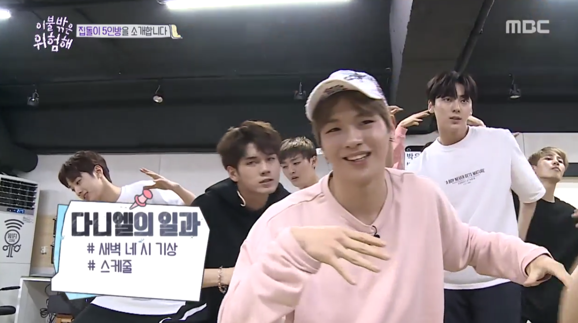 강다니엘은 27일 방송된 MBC-TV 파일럿 예능 '이불밖은 위험해'에 출연했습니다. 시우민, 용준형, 이상우, 박재정 등과 함께 '집돌이'로 초청 받았습니다.