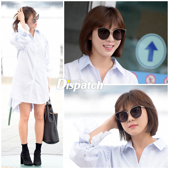 하지원은 셔츠 원피스로 과감한 각선미를 드러냈다. 짧게 자른 단발머리를 만지며 스타일링에 신경썼다.
