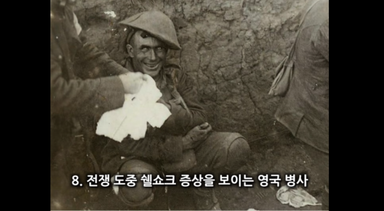 전투 상황에서 오는 극도의 공포감에 '쉘쇼크 증상'을 보인 군인의 모습입니다.