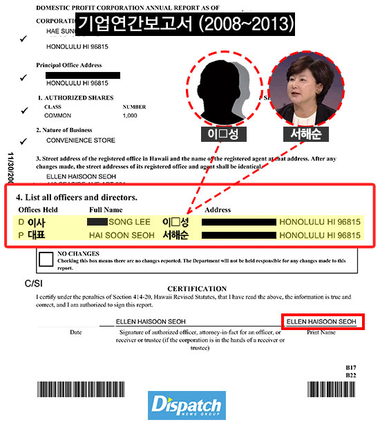 '디스패치'가 입수한 법인 설립 정관(Articles of Incorporation)에 따르면, 회사 이름은 해성코퍼레이션. 설립 장소는 하와이주. 설립 일자는 2008년 2월 24일이다.