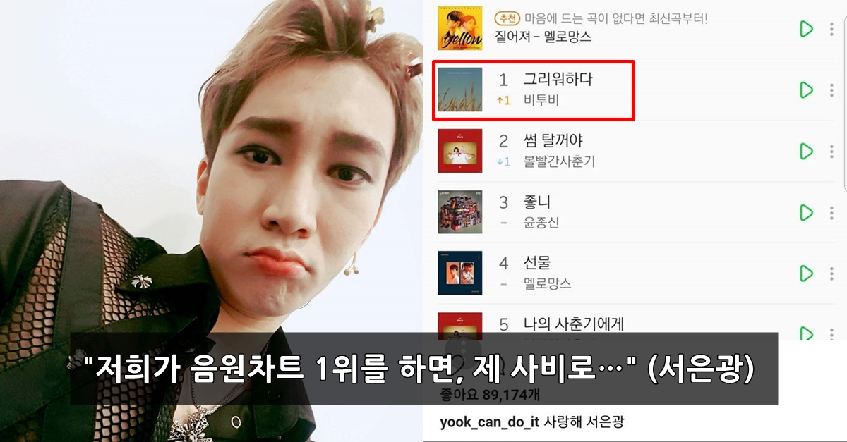 아이돌들은 음원차트 1위를 위해 종종 무리한 공약을 세우기도 합니다. 하지만 '비투비' 서은광만큼 무리한 공약을 세운 사람이 있을까요?