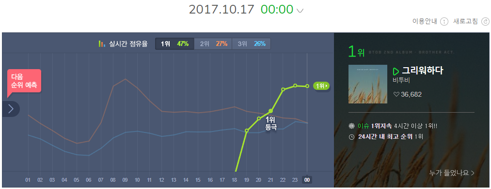 그리고, 그 말이 현실로 일어났습니다. 비투비는 지난 17일 멜론 차트에서 공개된 신곡 '그리워하다'를 정상에 올려놨습니다.