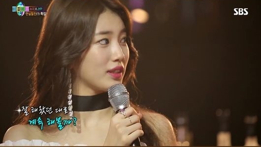 수지는 지난 15일 SBS-TV '파티피플'에 출연했는데요. MC 박진영은 수지와 재계약을 하게 된 과정을 밝혔습니다.