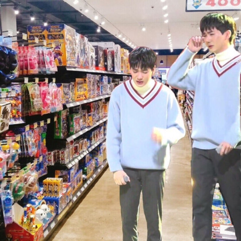 한 트위터리안은 멤버 JR의 사진과 아론의 사진을 함께 두고 센스있는 멘트를 달았습니다. 마치 JR이 "제가 마트에 아이를 두고 왔냐"며 놀라는 모습 같았는데요.