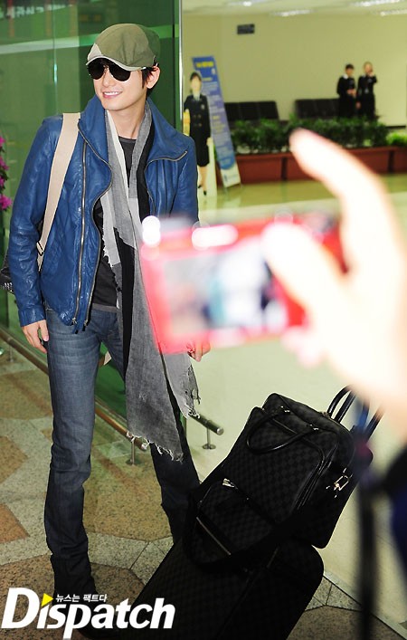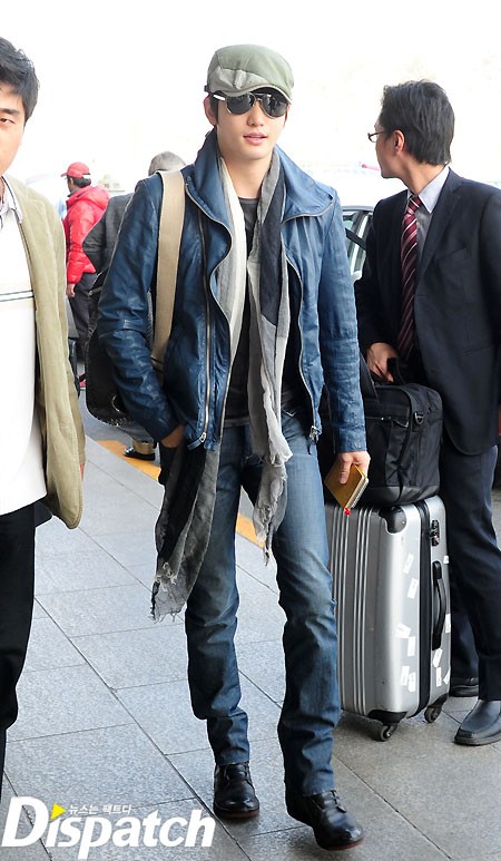 한류스타의 공항패션은 어땠을까요. 개성있는 깔맞춤 스타일이었는데요. 박시후는 파란색 가죽 재킷에 빈티지 청바지를 매치했습니다. 여기에 회색과 흰색이 배색된 머플러로 남다른 패션감각을 드러냈죠.