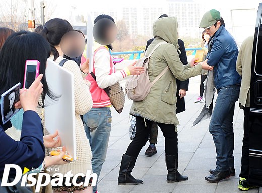 이쯤되면 아이돌도 뛰어넘는 인기입니다. 박시후가 내리자 마자 핸드폰, 카메라로 드르륵 드르륵. 여기서 한 누님팬은 용기를 내어봅니다. 그의 팔을 덥석 잡은거죠. 정성껏 포장한 선물과 편지도 전달했습니다. 누님의 과감한 터치에도 박시후의 표정은 밝았습니다.