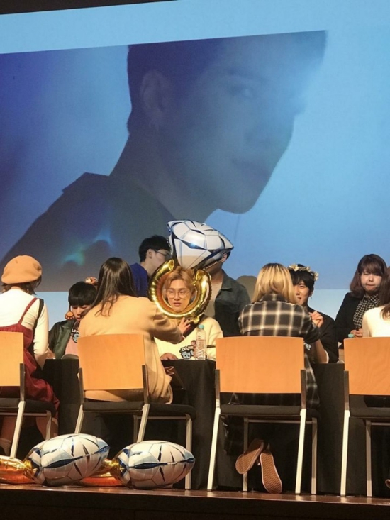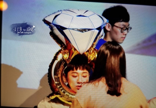 ‘JBJ’는 28일 열린 팬사인회에서 한 팬에게 다이아몬드 반지 형태의 풍선을 선물받았습니다.