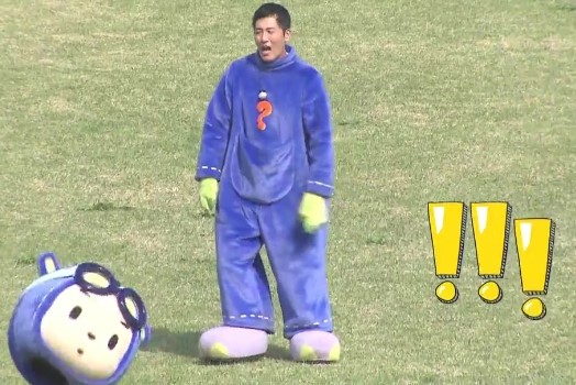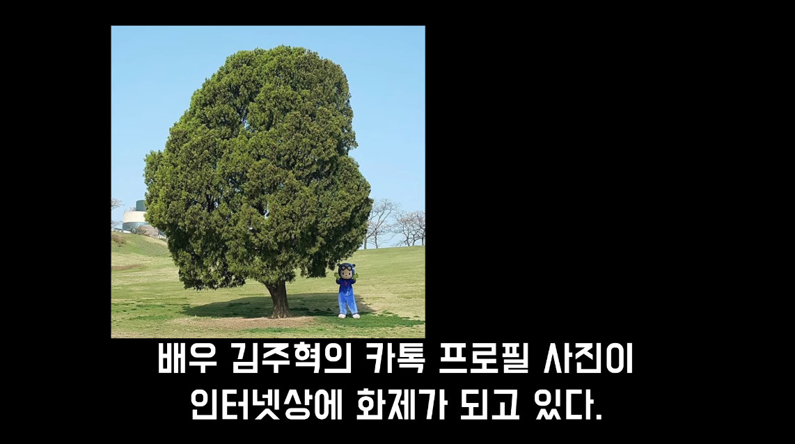 김주혁은 인형탈을 썼습니다. 큰 나무 옆에 섰고요. 두 손을 든 채 반갑게 인사하고 있었습니다.