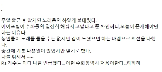 통역사는 행사 이후 자신의 SNS에 소감을 남겼는데요. "에이프릴이 수화통역 열심히 해줬다고 싸인CD를 줬다. 오늘이 존재해야만 하는 이유"라며 기뻐했습니다.