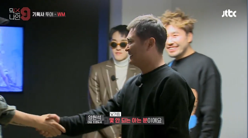 양현석은 지난 5일 방송된 JTBC '믹스나인'에서 소속사 'WM엔터테인먼트'를 찾아가는 모습을 보였습니다. WM은 B1A4, 오마이걸, 온앤오프 등 다양한 그룹이 속한 기획사죠.